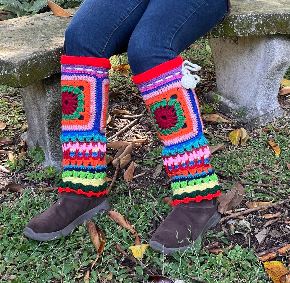Whimsical Boho Granny Crochet Leg Warmers