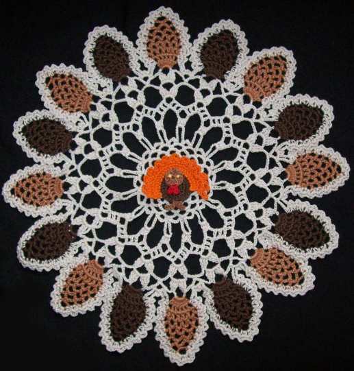 Thanksgiving Fall Leaves and Turkey Crochet Doily PDF Pattern